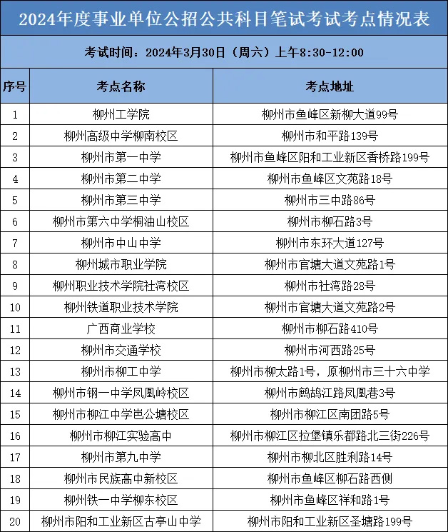 今年,25009名考生將在柳州市參加2024年度柳州市事業單位公開考試招聘工作人員公共科目筆試,柳州市考區共設20個筆試考點。
