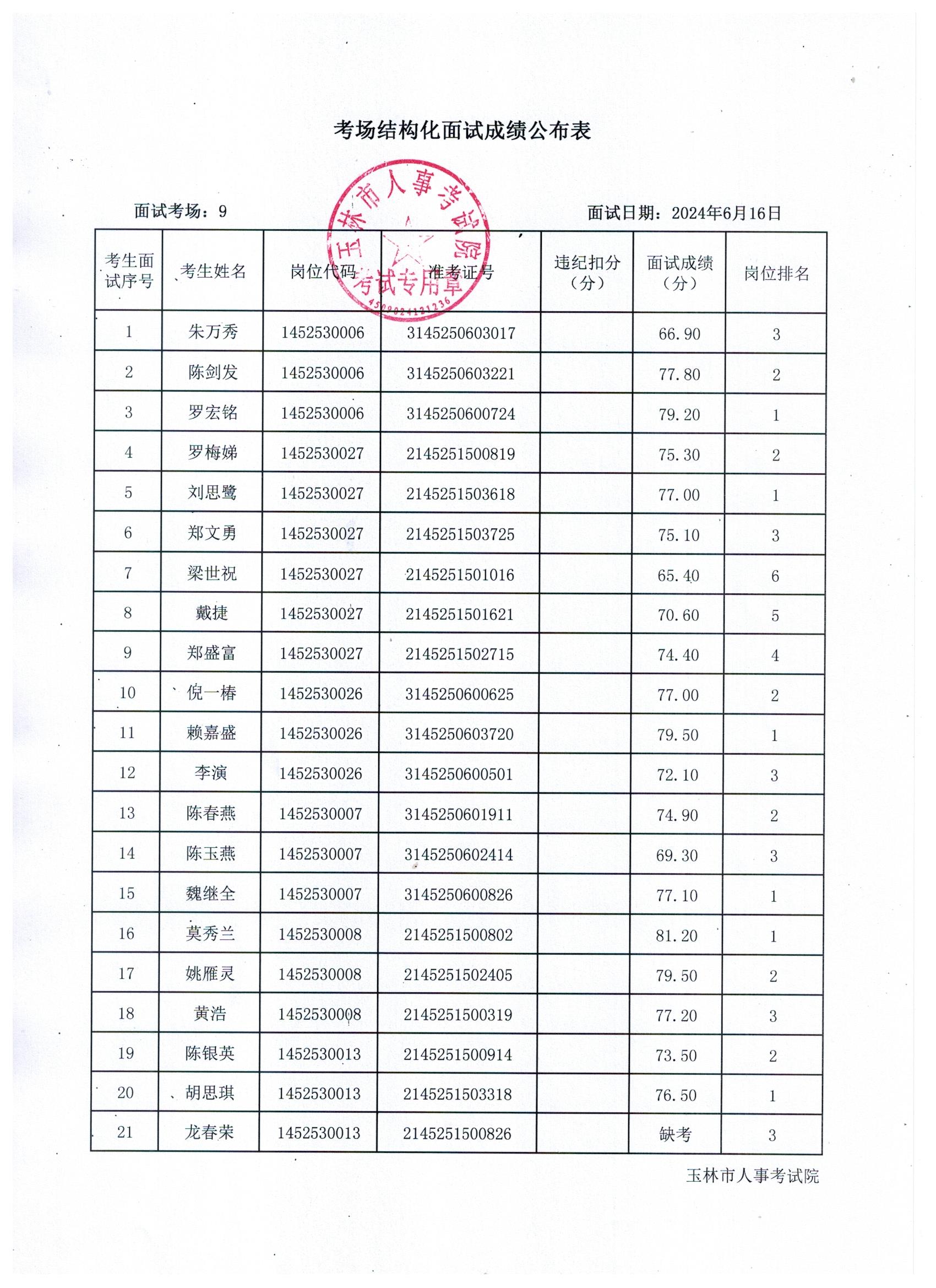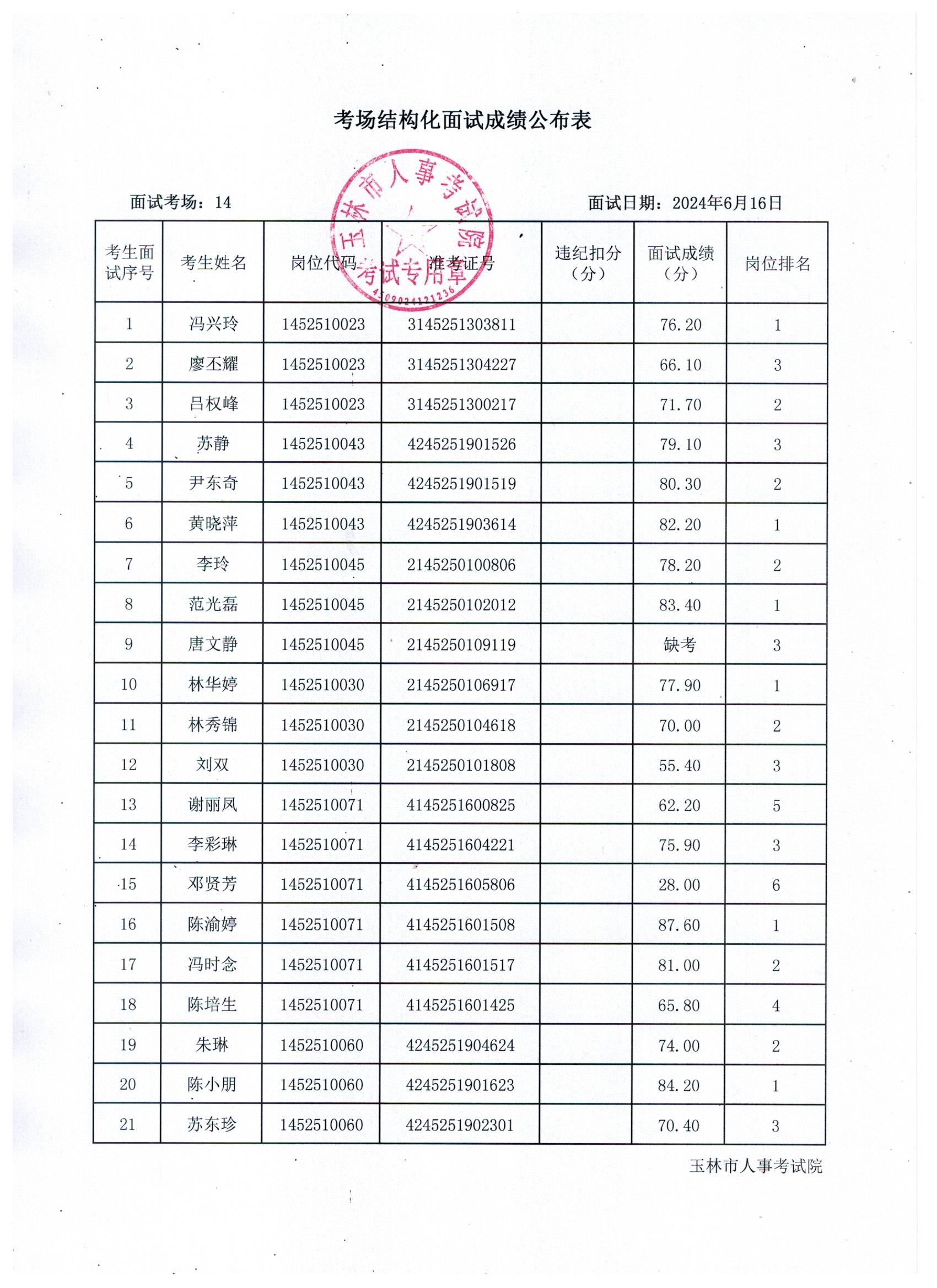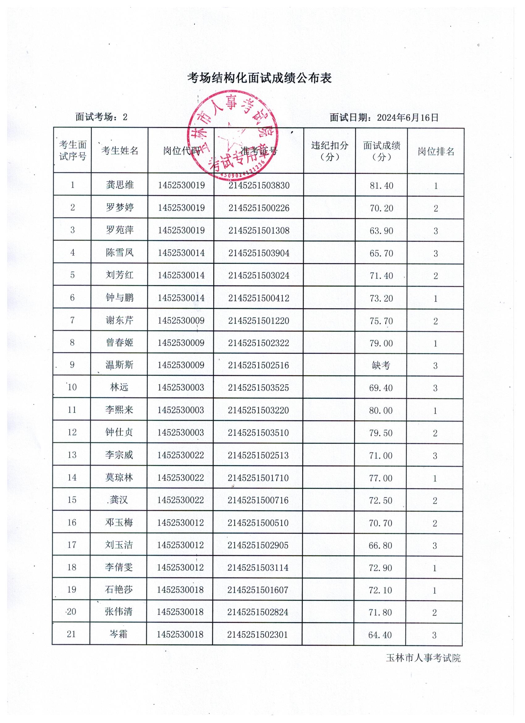 原文標題:2024年玉林市直(含玉州區、福綿區、玉東新區)事業單位公開招聘人員面試成績公布(6月16日)