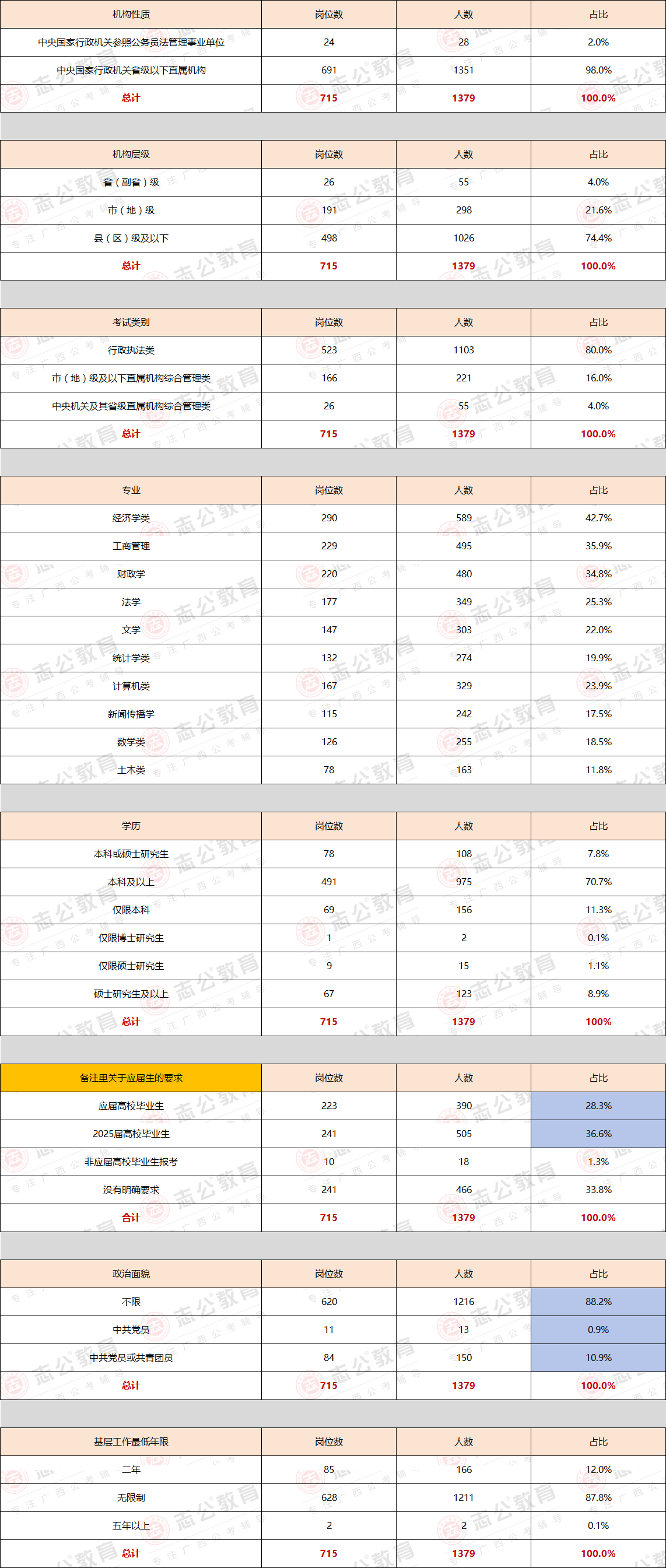 2025國考廣西職位分析:擴招!共715個崗位,招錄人數1379人!