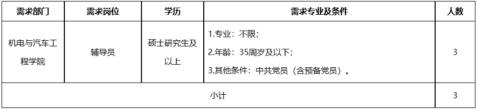 3.其他條件:具有參加中華人民共和國職業技能大賽參賽經驗者、職業技能等級證書優先。具有正高級職稱的,年齡放寬至50周歲及以下,學歷放寬至本科,具有副高職稱的,年齡放寬至45周歲及以下。