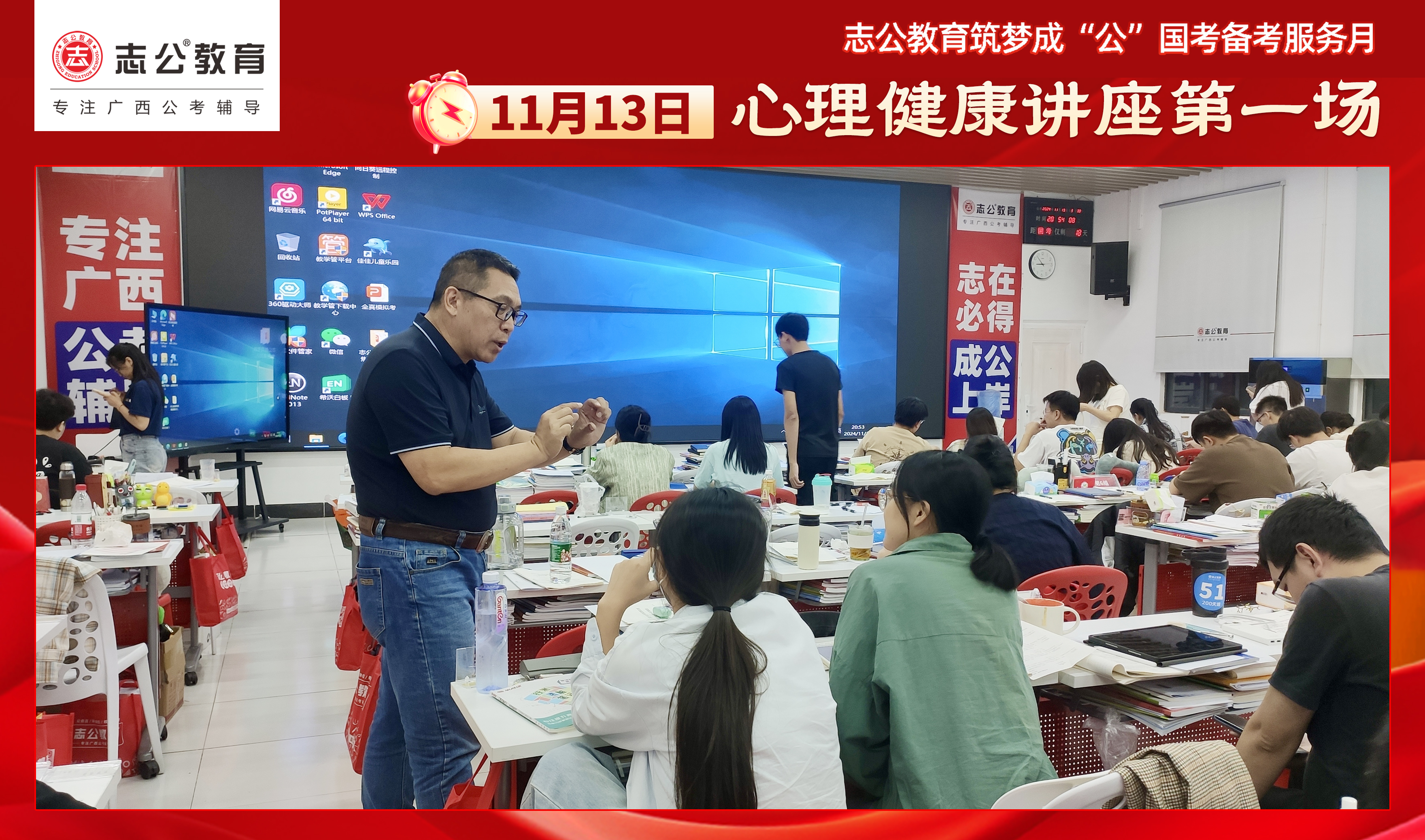 親愛的考生們,不要讓壓力成為你追夢途中的絆腳石。在志公教育基地班,你將學會如何在國考的征程中保持從容,如何在壓力下穩步前行。且行且看且從容,讓我們一起向著國考的勝利邁進!第一場心理講座已結束,第二場心理講座將在11月17日舉行,期待大家以更從容自信的姿態應對即將到來的公務員考試,加油!