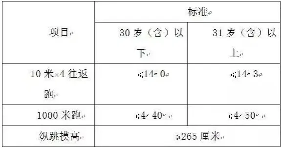 參照《關于印發公安機關錄用人民警察體能測評項目和標準(暫行)的通知》(人社部發〔2011〕48號)的項目及測試規則,結合《公安民警體育鍛煉達標手冊》成績標準,本次體能測評的項目和標準如下: