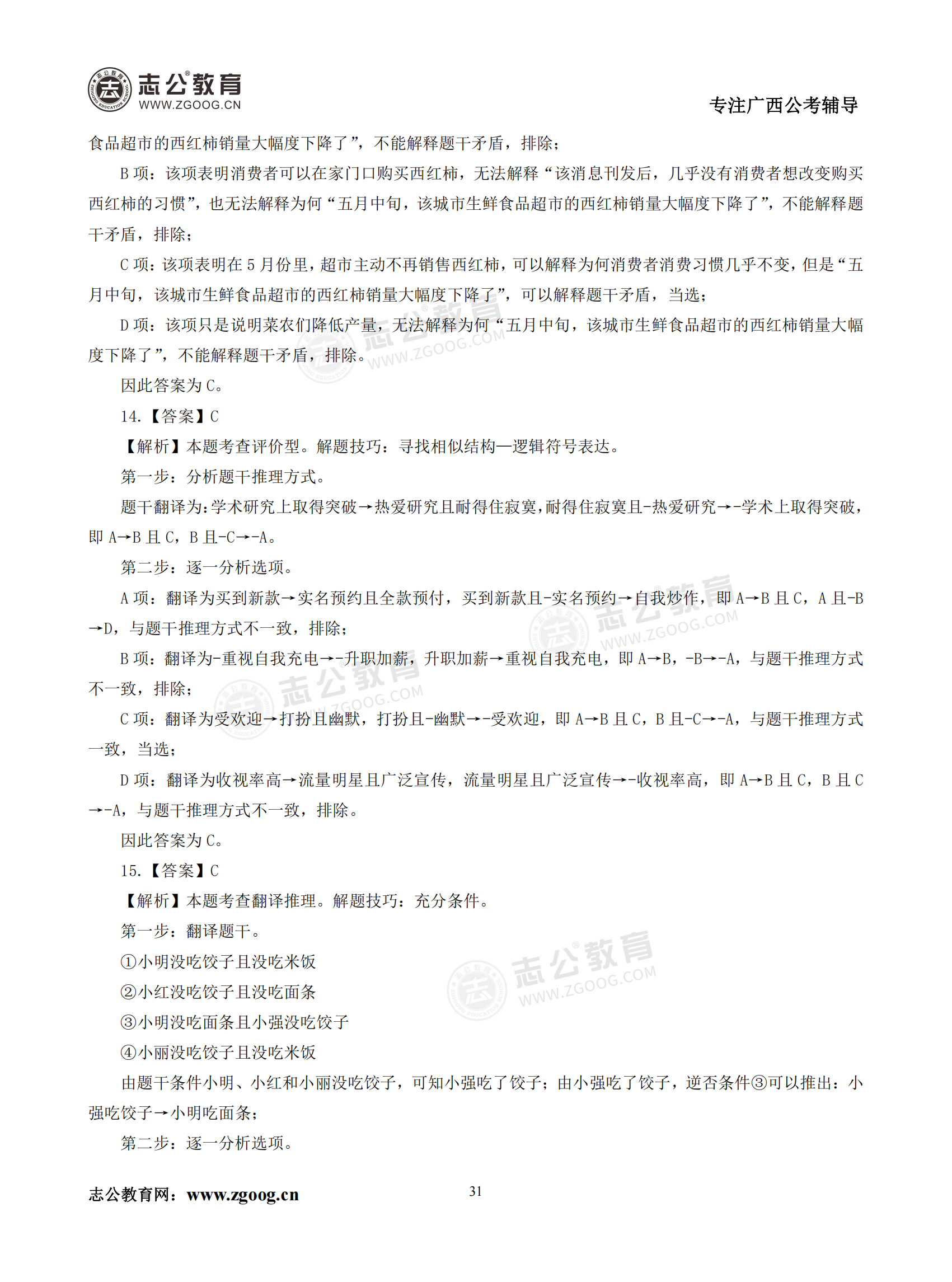 【公考模塊練習】判斷推理題一(答案)