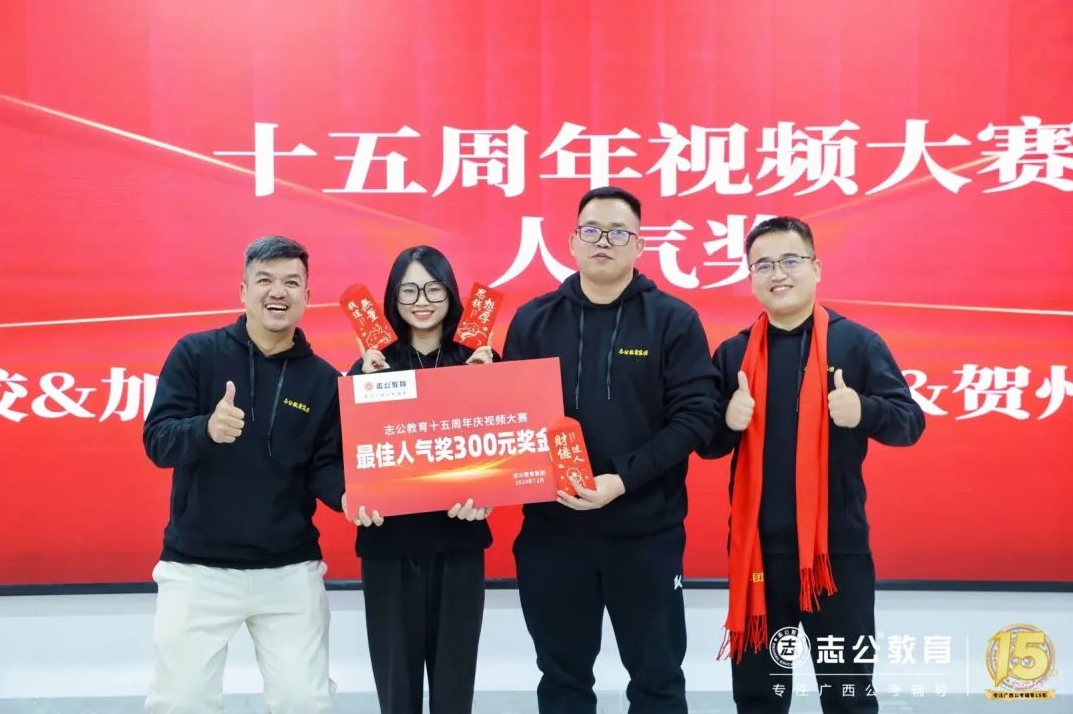 一直以來,志公教育都秉承著“12條企業文化核心價值觀”,包括客戶原則——以學員為中心”、“管理原則——人人都是經營者”等12項原則,扎根廣西本土公考,全力服務每一位志公學員。在董事長李勇的正確領導下,在廣大學員的支持下,在全體員工的共同努力下,志公教育從無到有,從小到大,不斷夯實發展基礎,贏得了客戶的信賴和品牌形象。全體志公人將堅定目標齊奮斗、凝心聚力再出發,為志公高質量發展再立新功。