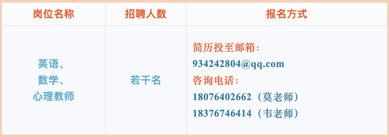 報名實行網絡形式,有意者請將簡歷投至學校郵箱934242804@qq.com。具體面試時間電話通知。