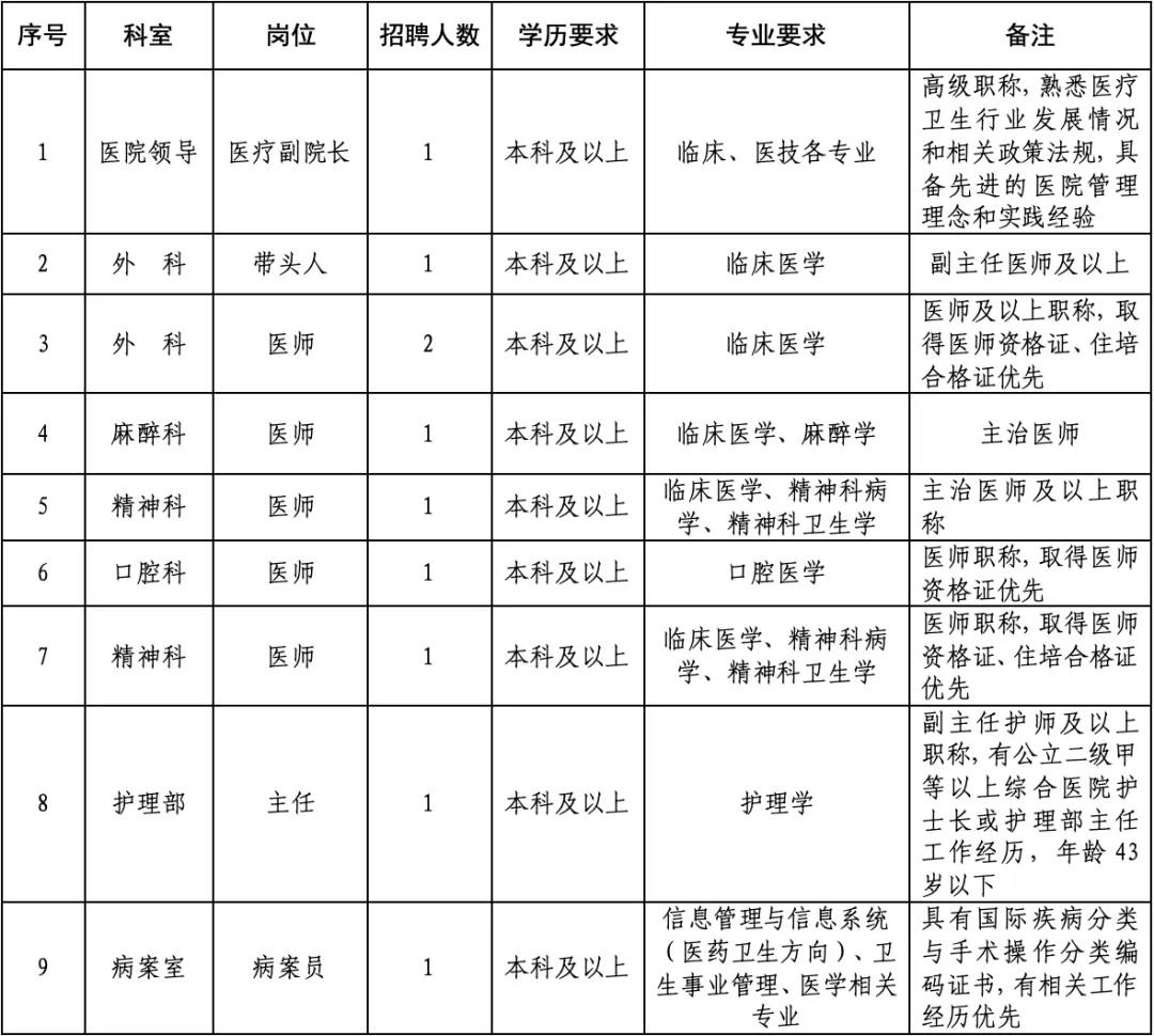 2.身心健康,熱愛醫療事業,并能勝任本崗位工作。
