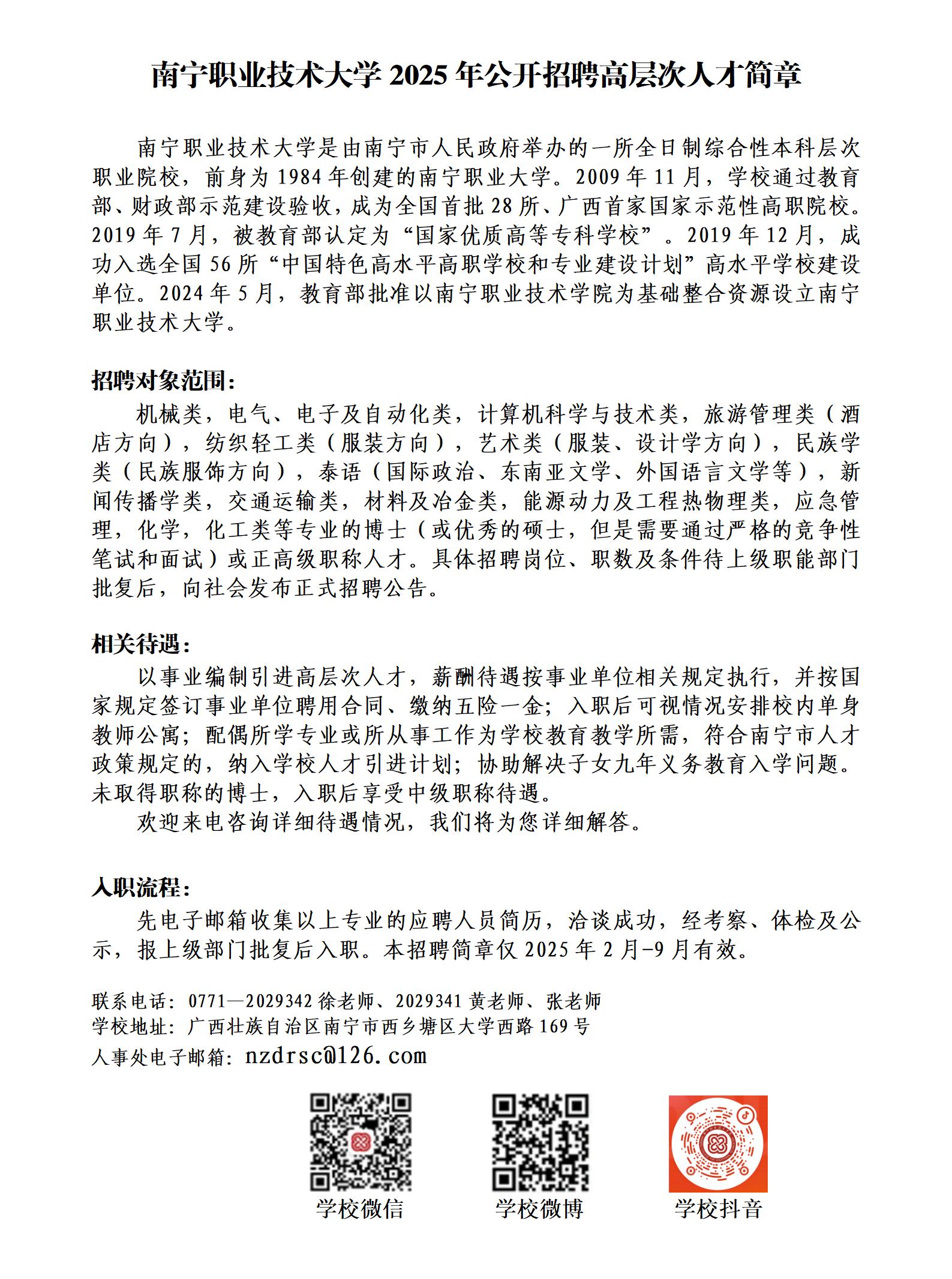 原文標題:南寧職業技術大學2025年招聘高層次人才簡章