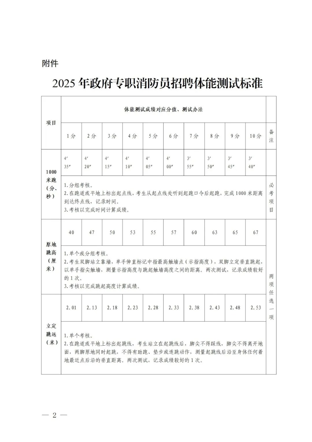 測試時間、地點具體以通知為準,應聘人員須參加體能測試,并當場簽訂《體能測試健康安全風險承諾書》。體能測試有兩項及兩項以上不得分的視為不合格(標準參照附件)。