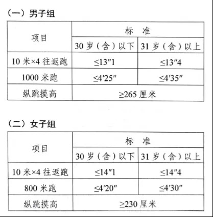 參照《公安機關錄用人民警察體能測評項目和標準》的項目及測試規則開展體能測評,本次體能測評的項目和標準如下: