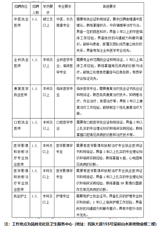 原文標題:鳳嶺北社區衛生服務中心招聘公告