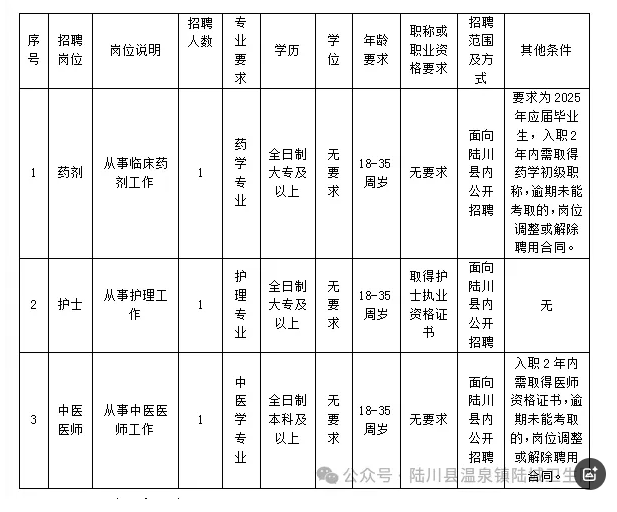 原文標題:陸川縣溫泉鎮陸城衛生院公開招聘編外醫務人員公告