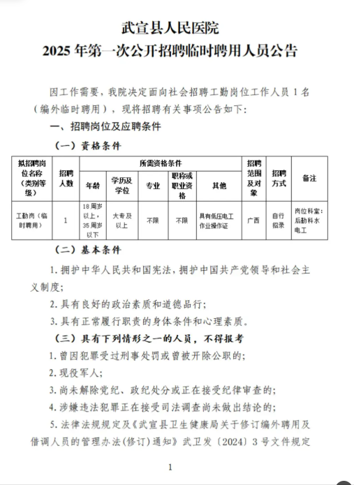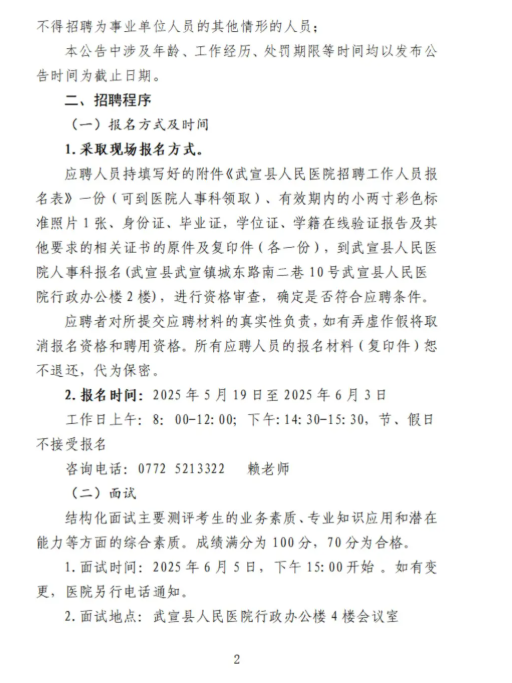 原文標題:武宣縣人民醫院2025年第一次公開招聘臨時聘用人員公告
