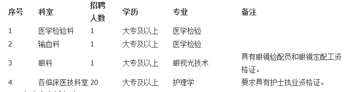 根據業務發展需要,現決定對外公開招聘合同制檢驗師、驗光師和護理人員若干名,勞務派遣到賀州市人民醫院從事輔助性崗位工作。凡有意向且符合報名條件者均可報名應聘,具體條件及招聘辦法如下: