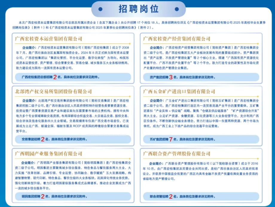 原文標題:廣西宏桂資本運營集團有限公司2025年夏季招聘啟事