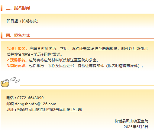 2025年廣西柳城縣鳳山鎮衛生院臨床醫師招聘3人