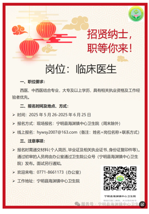 原文標題:寧明縣海淵鎮中心衛生院招聘信息