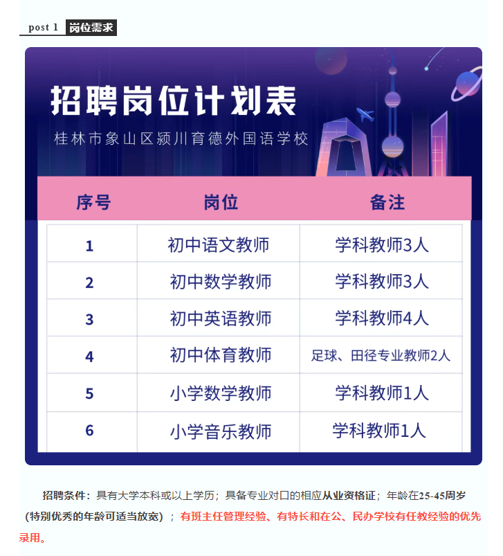 2025年廣西桂林市象山區潁川育德·教師招聘14人