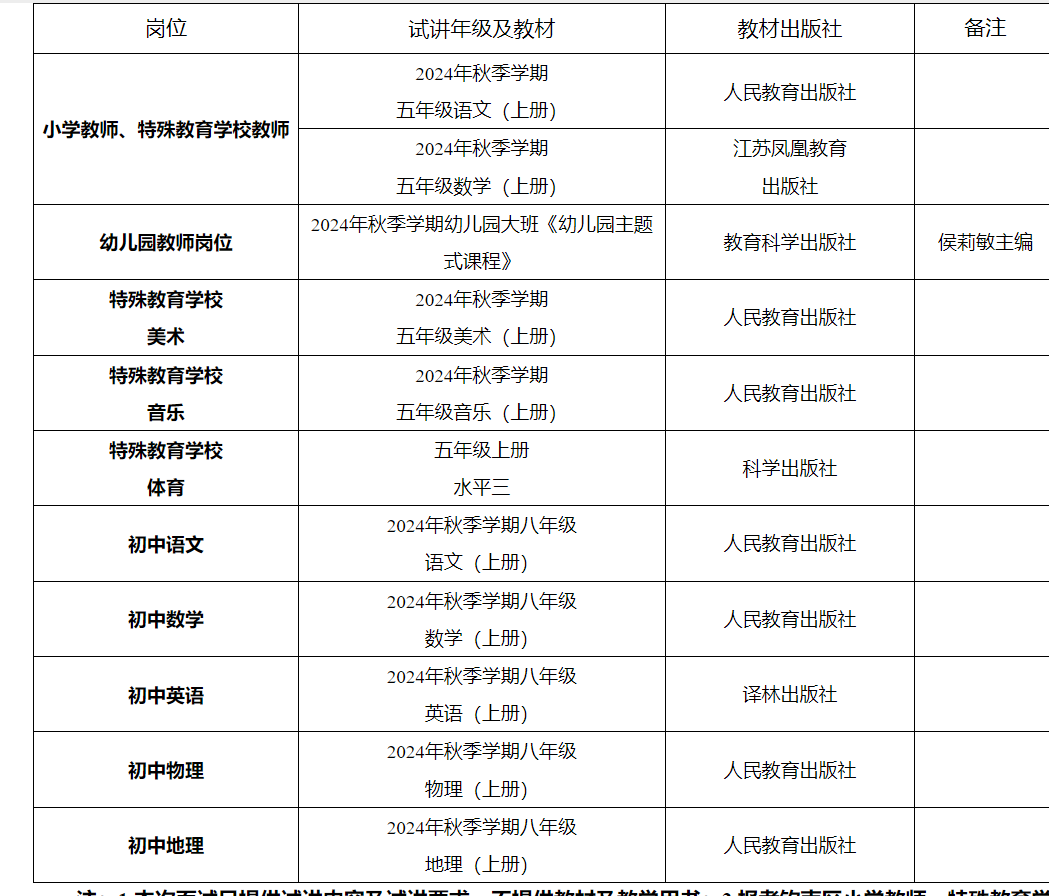 注:1.本次面試只提供試講內(nèi)容及試講要求,不提供教材及教學(xué)用書;2.報考?xì)J南區(qū)小學(xué)教師、特殊教育學(xué)校教師崗位的考生可自由選擇語文或數(shù)學(xué)進行試講。