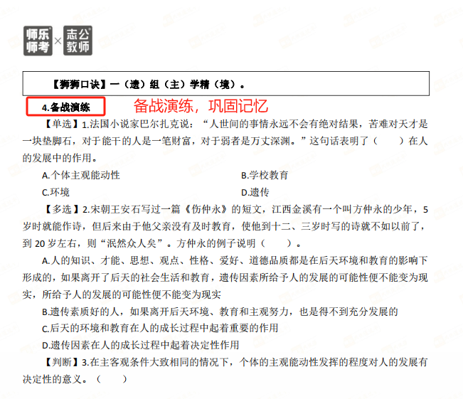 匹配考綱要求,精選50個核心考點:銘師組團精研,基于考綱收錄《教育學與教學法基礎知識》《教育心理學與德育工作基礎知識》核心考點,重點突出,幫助考生學習記憶。