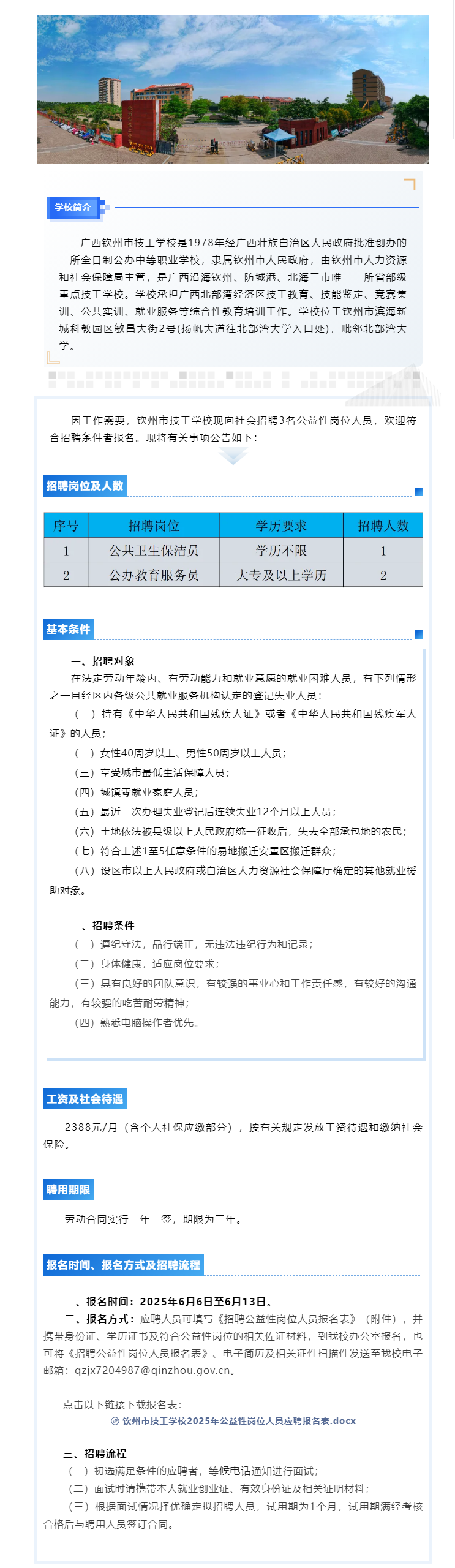 原文標題:欽州市技工學校招聘公益性崗位人員公告