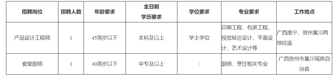 本次公開招聘2人,需求崗位、人數、學歷專業要求等資格條件,工作內容、職位要求詳見附件《廣西真龍彩印包裝有限公司2025年第一批次人才招聘需求表》