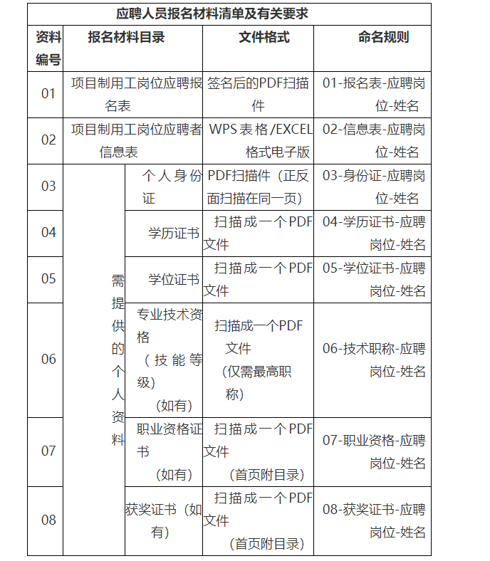 應聘人員按照《應聘人員報名材料清單及有關要求》提供相應報名材料,壓縮成一個文件(文件名和郵件主題統一以本人姓名進行命名),發送至電子郵箱:515827308@qq.com。本次招聘僅接受電子郵件方式報名,報名材料一經提交不能修改。