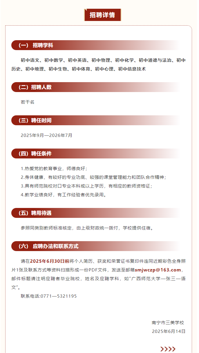 南寧市三美學校2025-2026學年臨聘教師招聘啟事
