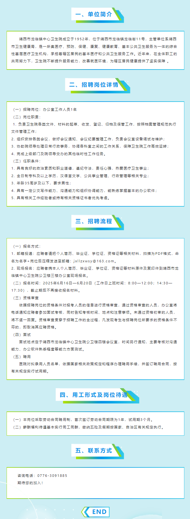 原文標題:靖西市龍臨鎮中心衛生院辦公室人員招聘公告