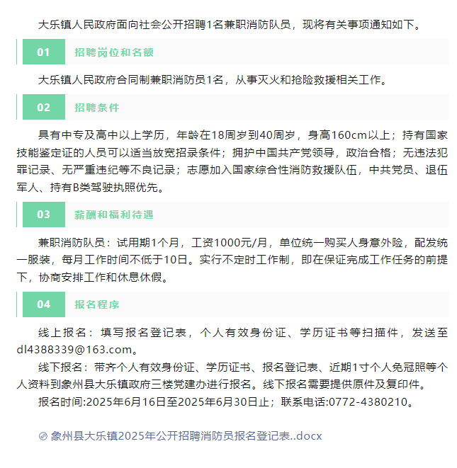原文標題:大樂鎮招聘消防隊員公告