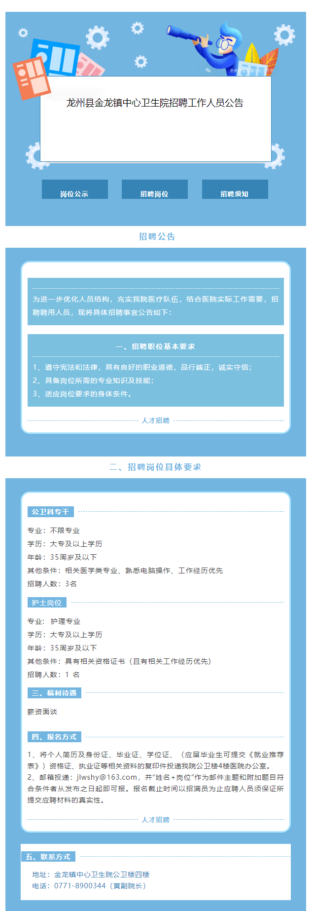 原文標題:龍州縣金龍鎮中心衛生院招聘工作人員公告