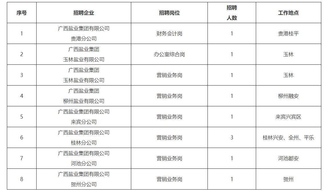 具體招聘崗位、任職要求、崗位職責見附件《廣西鹽業集團招聘崗位職責及任職要求》。