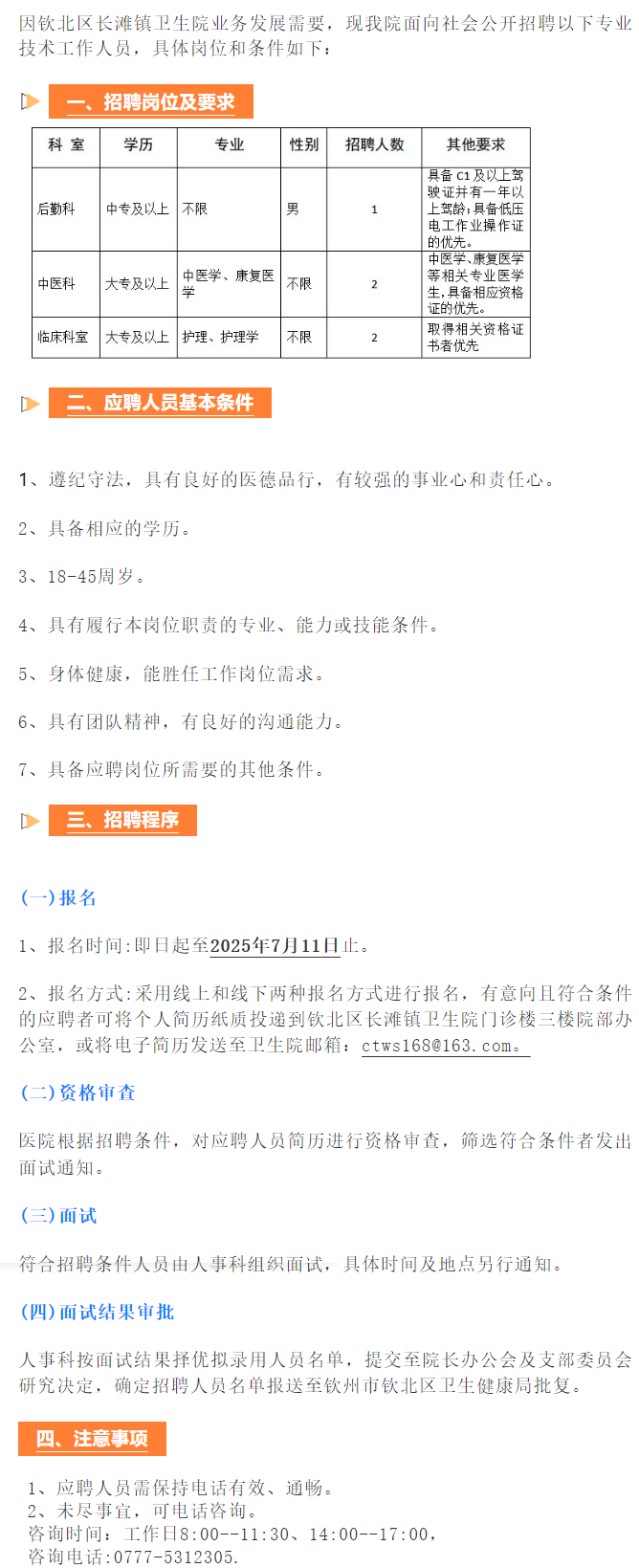 原文標題:欽北區長灘鎮衛生院關于招聘2025年編外人員的公告
