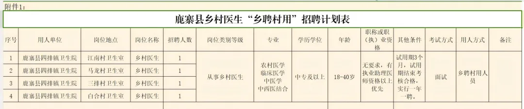 原文標題:鹿寨縣四排鎮衛生院:2025年鄉村醫生“鄉聘村用”招聘公告