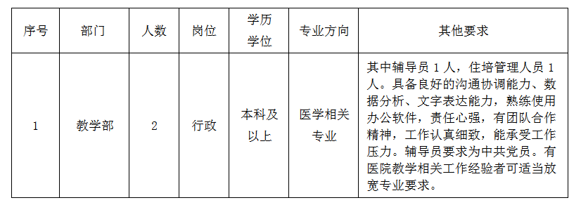 根據醫院的發展需求,現公開招聘編外工作人員2名,具體要求如下: