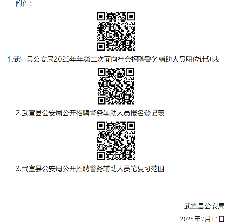 原文標題:武宣縣公安局關于2025年第二次面向社會招聘警務輔助人員的公告
