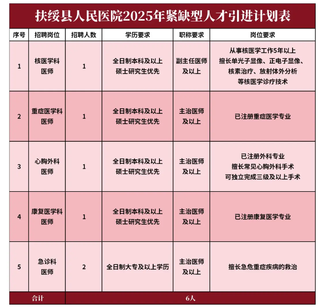 原文標題:扶綏縣人民醫院2025年人才招聘公告