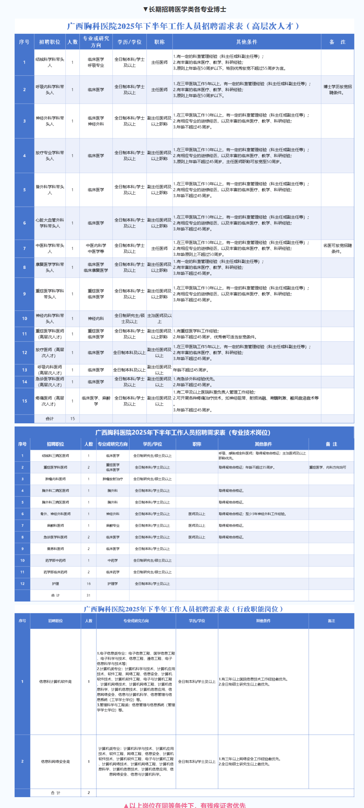2025年廣西胸科醫(yī)院下半年工作人員招聘48人