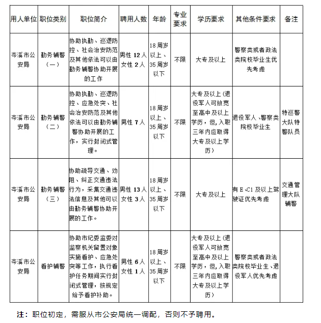 1.本次招聘的輔警依法履行輔助性工作職責,由公安機關管理使用,不具有人民警察和公務員身份,不行使人民警察職權,不辦理編制手續,在公安機關及其人民警察的指揮和監督下開展輔助性工作。