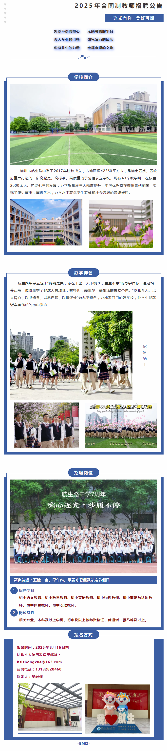 2025年秋季學期柳州市航生路中學合同制教師招聘公告