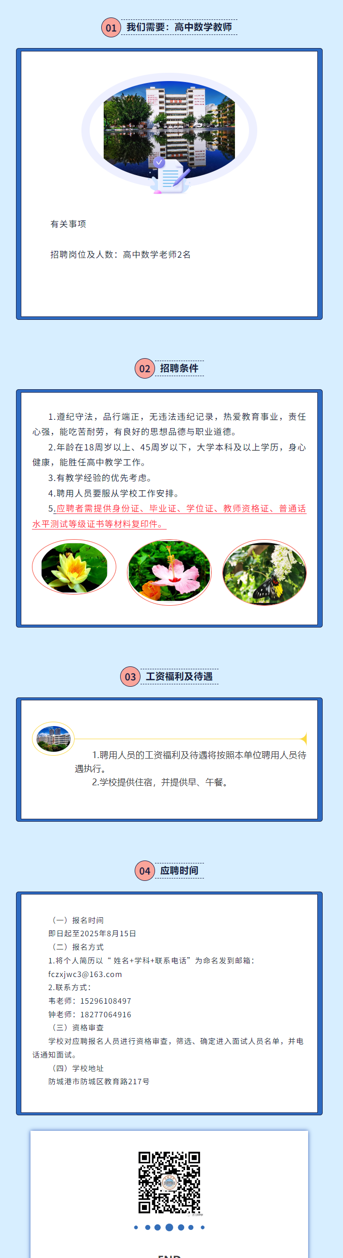 2025年防城港市防城中學秋季學期高中數學頂崗教師招聘2人