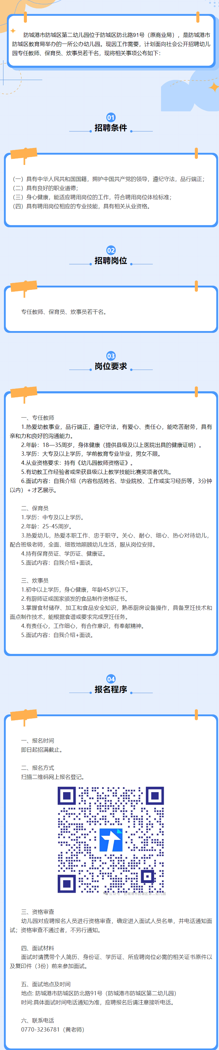 原文標題:防城區第二幼兒園2025年秋季學期教職工招聘公告