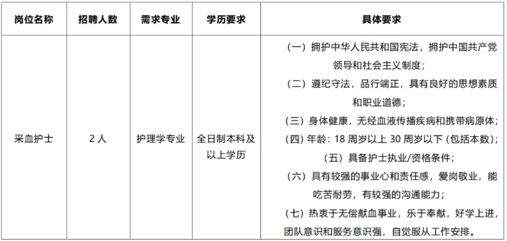 2025年河池市中心血站編外工作人員招聘2人