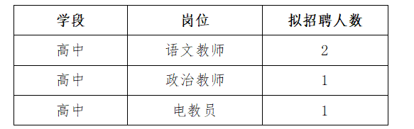 1.學科教師:大學本科學歷,專業符合相應學科要求(有學士學位、高中教師資格證的優先聘用);高校大四在校本科生可通過教育實習形式應聘。