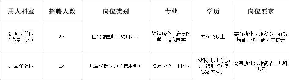 原文標題:住院部醫師、兒童保健科醫師招聘公告
