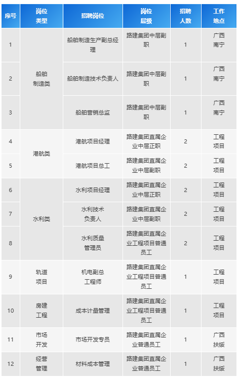 根據廣西路建集團發展需要,現面向社會公開招聘關鍵崗位人才,誠邀有志之士與廣西路建集團共創美好未來。