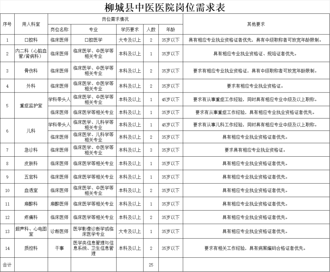 原文標題:2025年柳城縣中醫醫院多個崗位正在招聘