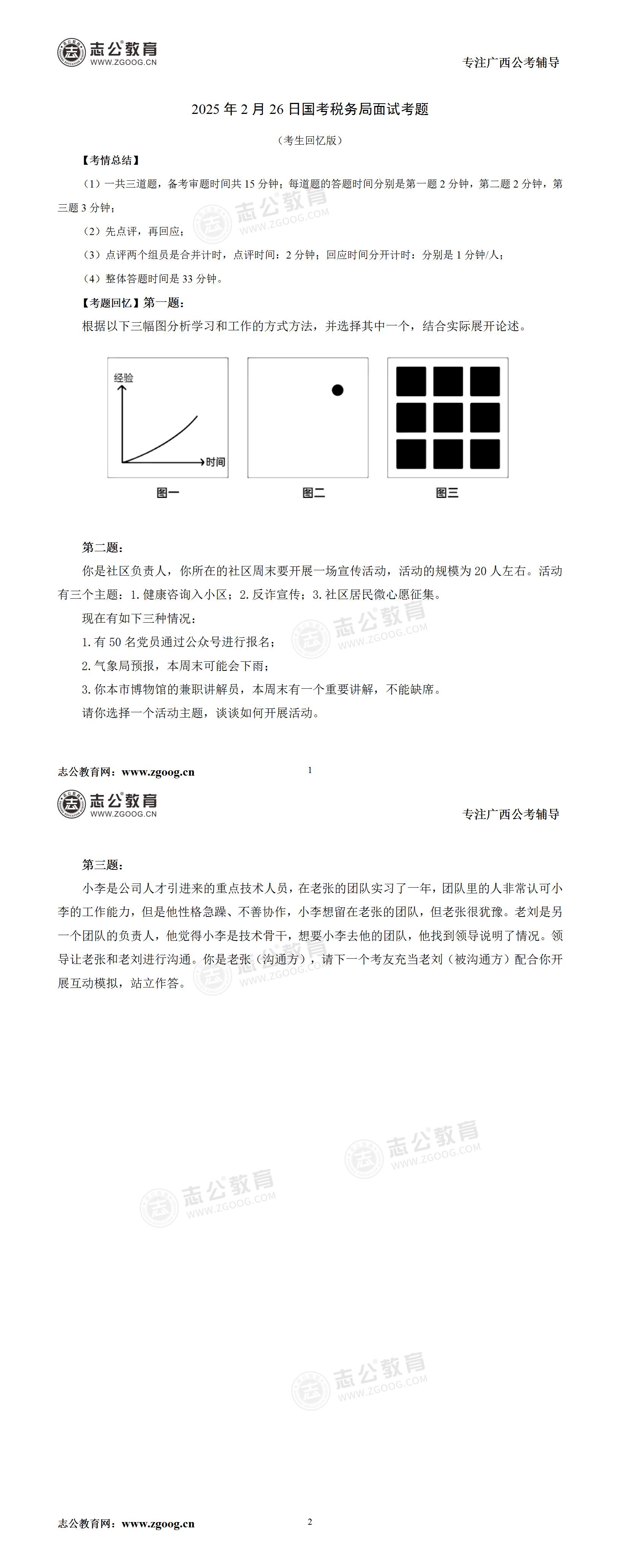 2025年國考稅務局2月26日面試考題(考生回憶版)