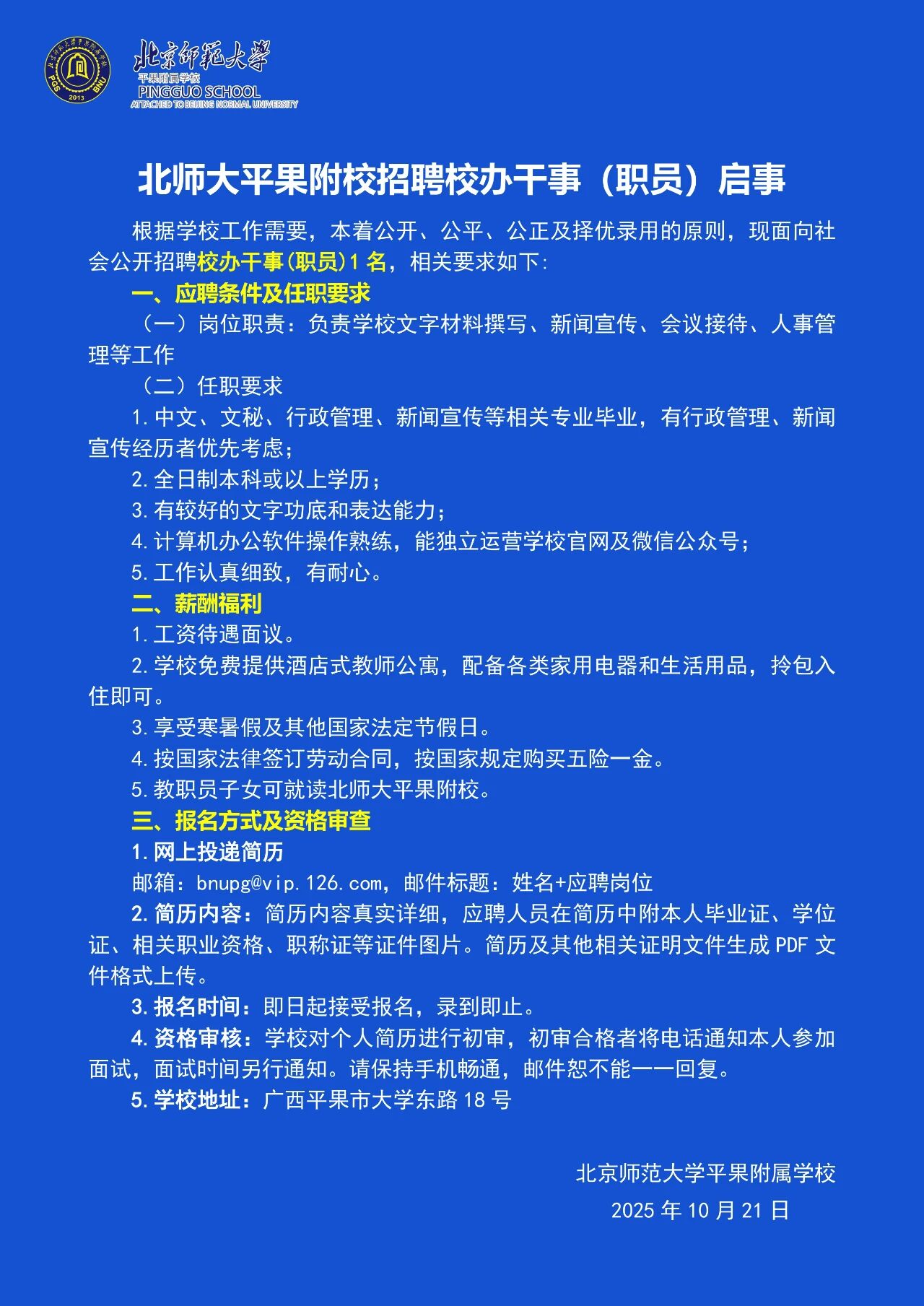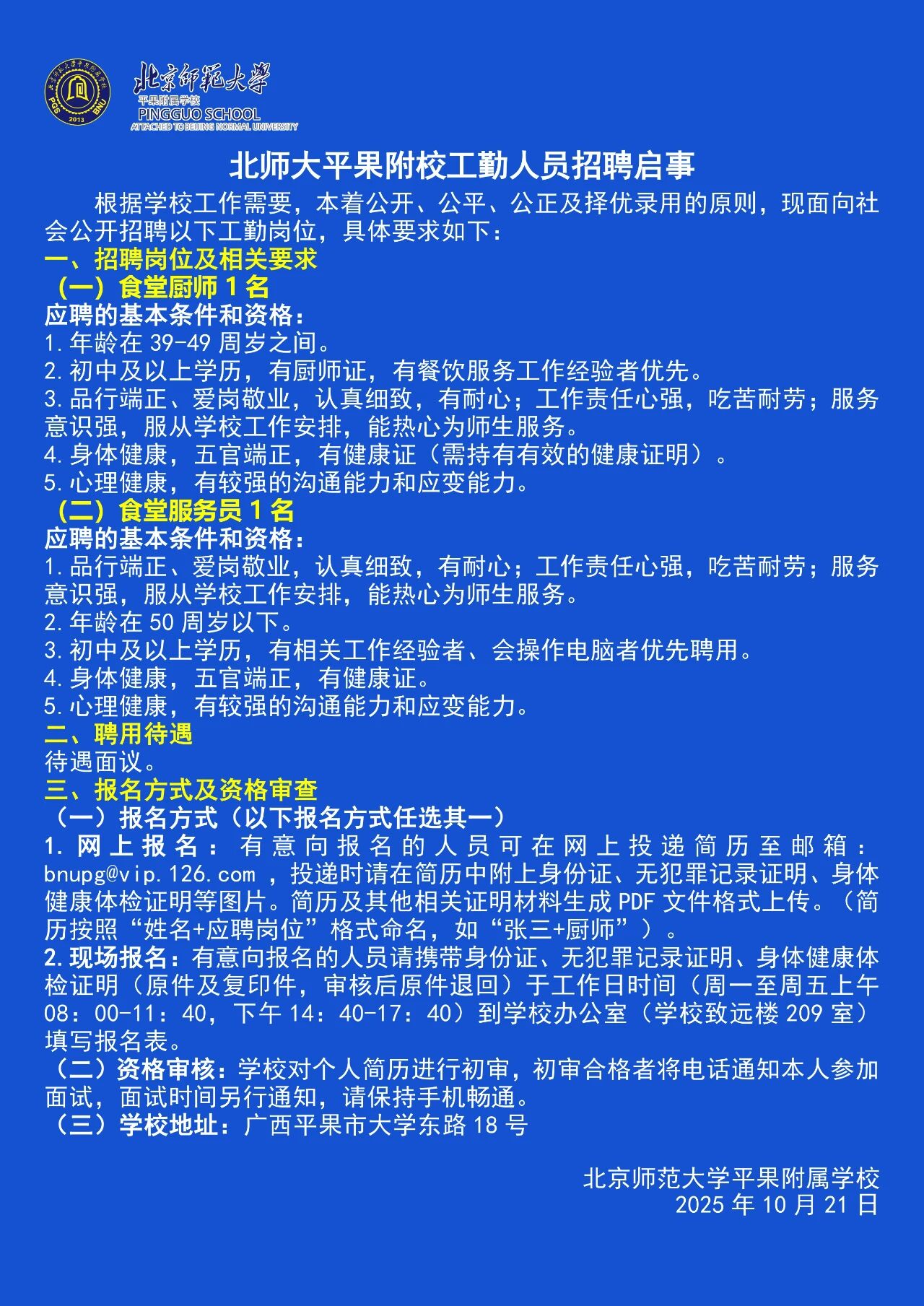 原文標題:北師大平果附校教師、校辦干事及工勤人員招聘啟事