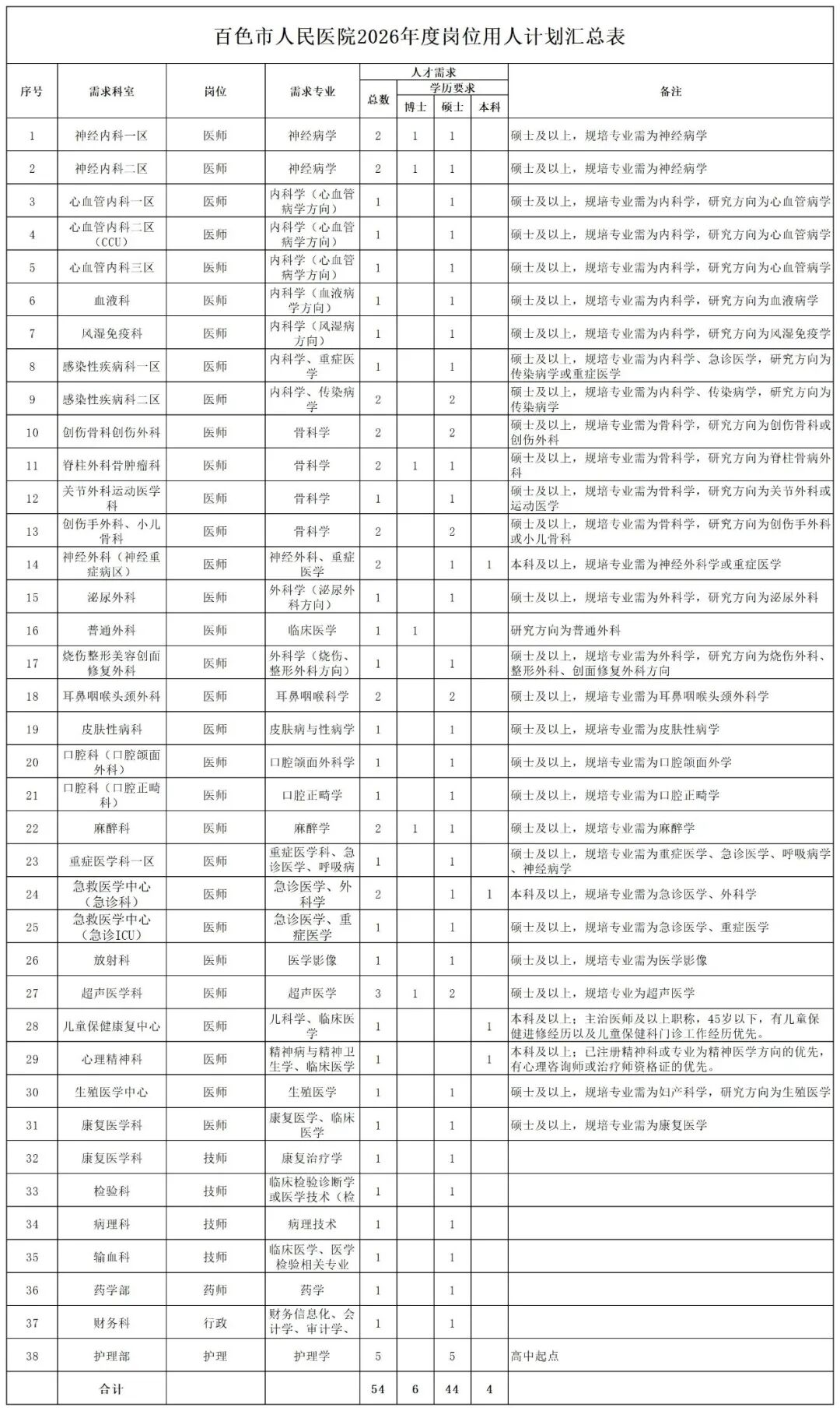 4.具備崗位所需的專業知識、技術能力和科研能力,符合崗位所對應的學歷、學位及其他要求。醫師崗位要求具有醫師資格證、醫師執業證、住院醫師規范化培訓合格證書。