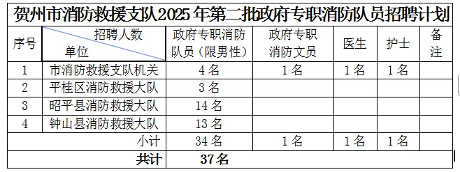2025年賀州市消防救援支隊(duì)公開(kāi)招錄政府專職消防隊(duì)員的公告